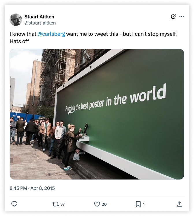 Carlsberg created a poster that dispensed actual beer to passersby.