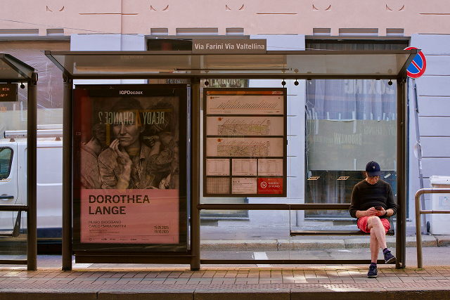 - Bus shelters, kiosks, and news racks targeting pedestrians and street-level traffic